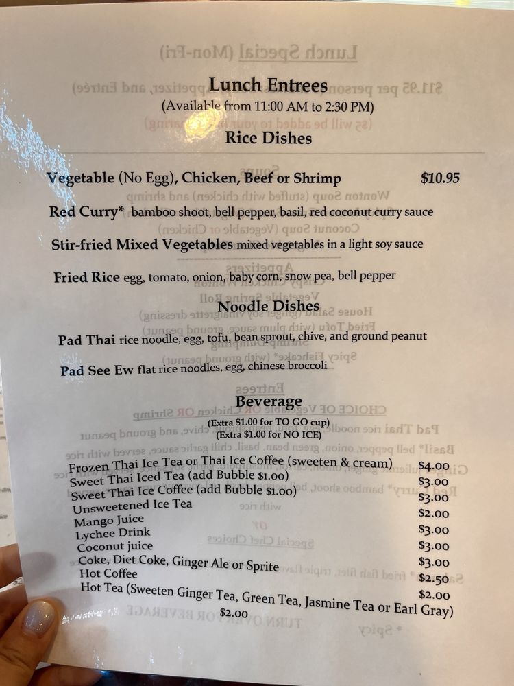 The menu boasts an impressive selection of dishes, including the aromatic Red and Green Curry and fan-favorites like the Sweet and Sour and Drunken Noodles. With vegan options and flavorful customizable fried rice, there’s something for everyone. Customers rave about the friendly service and reasonable prices, making it an ideal spot for lunch or dinner.